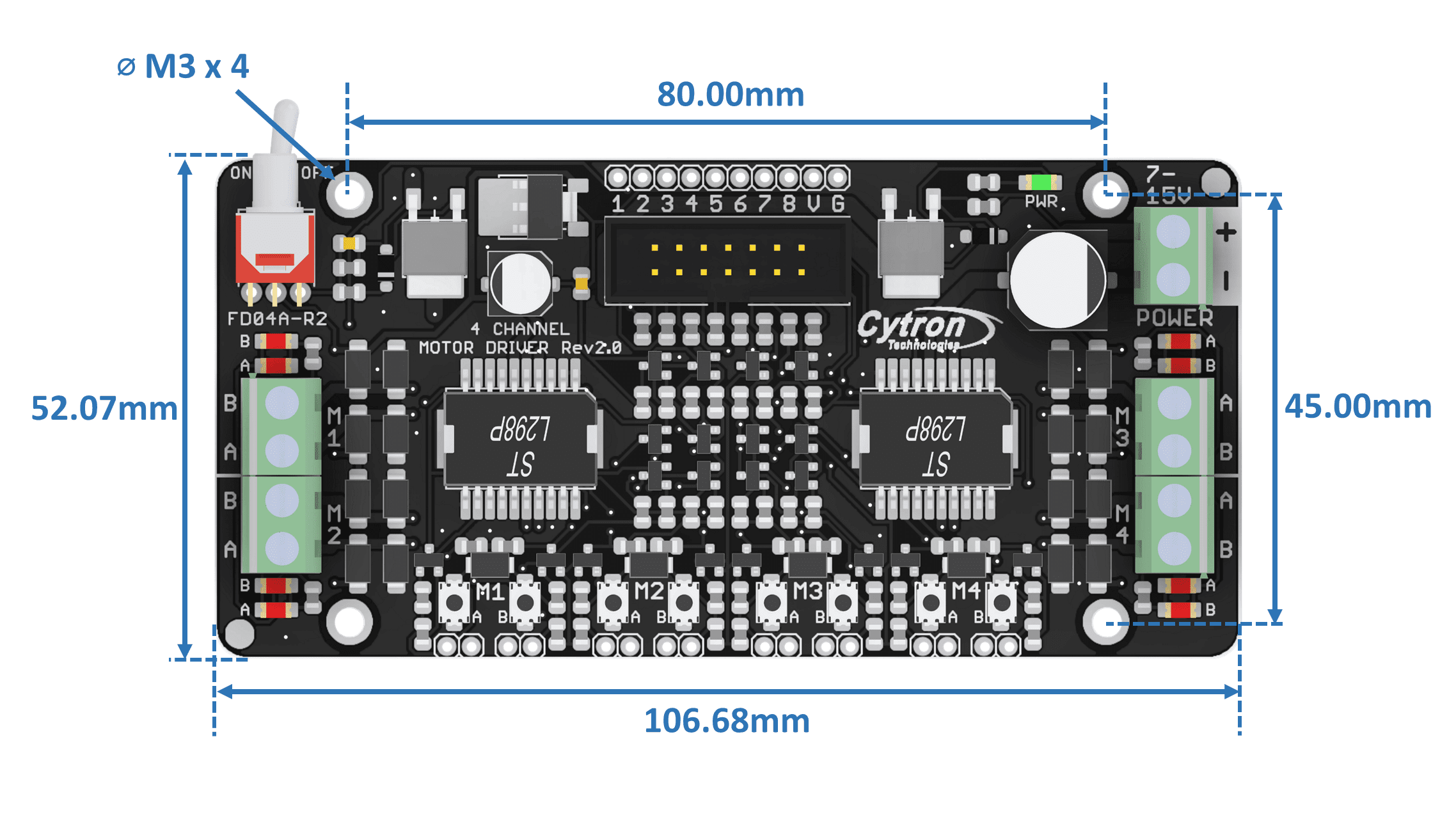 • Voltaje de operación: 7V–25V DC
