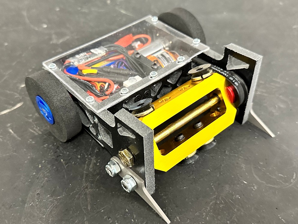 Beater Bot ofrece un equilibrio ideal entre tracción, potencia ofensiva y maniobrabilidad dentro del limitado peso de 1 lb. Su estructura combina diseño mecánico eficiente con puntos de montaje estandarizados, permitiendo que tanto constructores principiantes como avanzados puedan ensamblar, ajustar y optimizar su robot para competencias y pruebas técnicas.