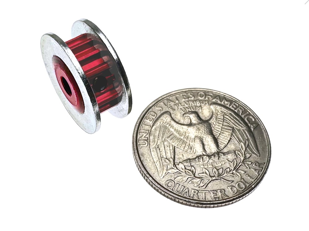 Polea FingerTech 15T S3M de aluminio delgada diseñada para sistemas de transmisión por banda en robots, ofreciendo precisión, bajo peso y alta eficiencia en aplicaciones de robótica competitiva y proyectos STEM.